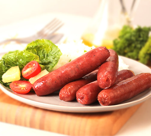 This is a sweet sausage that tastes like Christmas morning — with just the right hint of Chinese ham or Jamon Serrano with every bite. People have described this product as tasting like wine, and they are right. It does have that tangy, springy taste to it, much like sipping fine wine. Taste it to believe it!